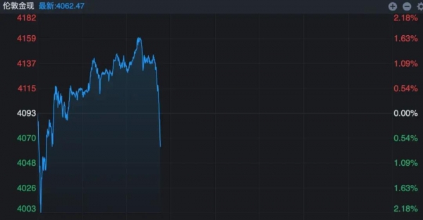 现货黄金在21日大跌之后,昨天盘中再次直线跳水。截至发稿,伦敦金现报4062.47美元/盎司,日内再次由涨转跌。