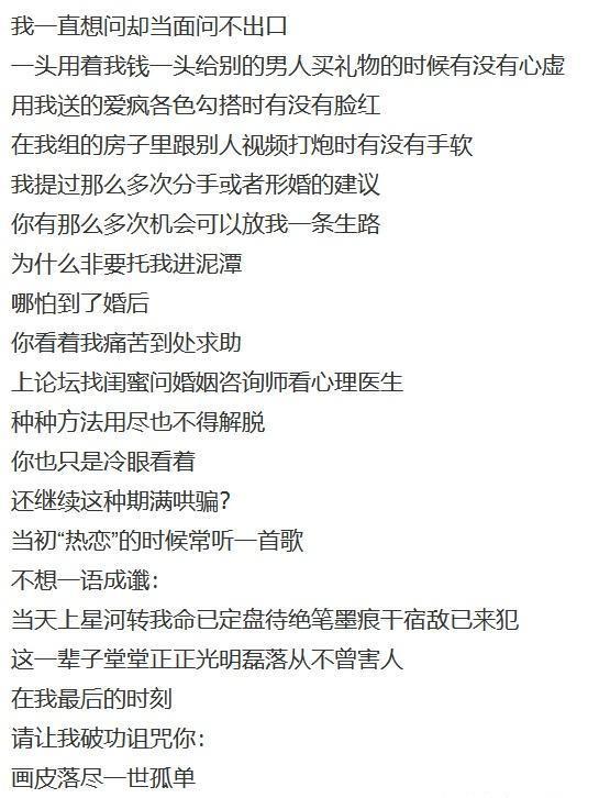 罗洪玲感觉到了从所未有的羞辱,程建生发的每一个字,都成为深深刺痛罗洪玲的利剑。在这段婚姻中本来就被伤得体无完肤的她,在微博上留下了一段话: