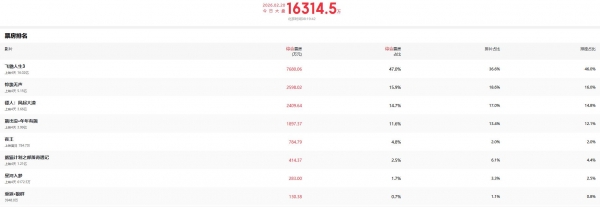 截至2月20日早上8点19分,《飞驰人生3》已斩获16.02亿票房,比排列第二的《惊蛰无声》多出近11亿。 图源:猫眼电影