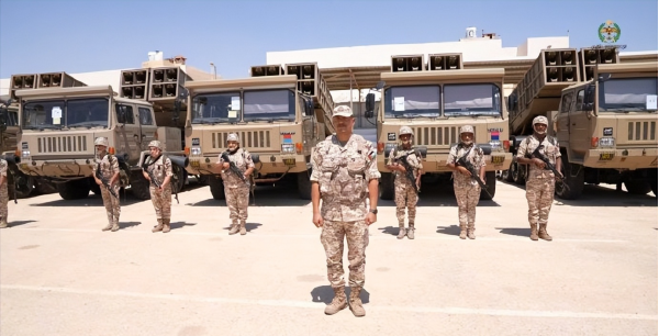 约旦士兵背后的SR-5火箭炮
