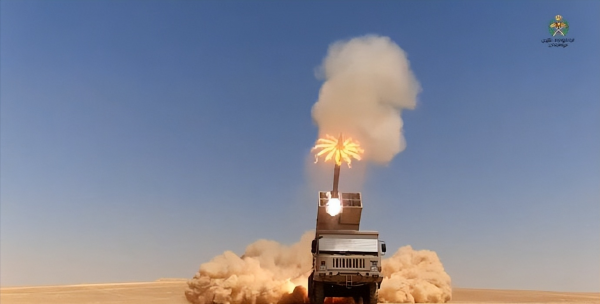 SR-5型火箭炮最具代表性的特点是可有效整合122毫米口径与300毫米口径两种火箭弹,从这次从约旦电视台放出的画面也可以看到,约旦所使用的SR-5火箭炮上混装着四联装300毫米口径神龙-150火箭炮和20枚122毫米火箭炮。