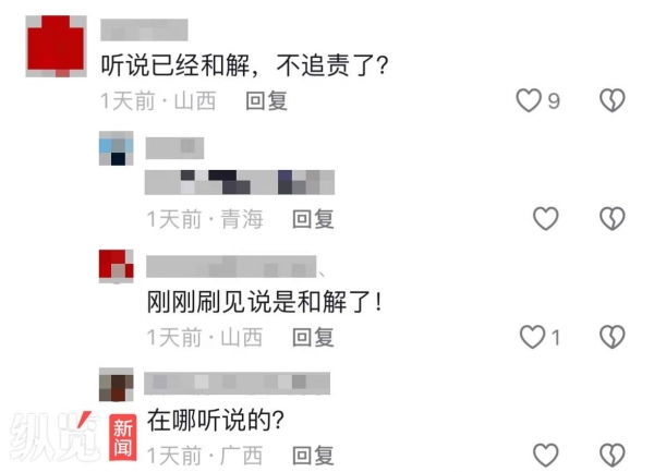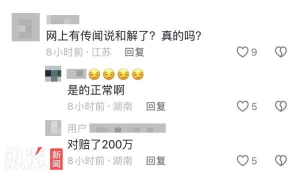 9月1日,有网传消息称,打人司机王某和被打司机林某某已经达成和解。在林某某社交账号的评论区,记者注意到,也有多名网友留言询问网传已经和解是否属实。还有网友称,王某赔偿了200万。纵览新闻记者联系了崂山区返岭派出所和青山社区工作人员进行求证,接电话的工作人员均表示,没有听说双方达成和解一事,建议记者关注官方通报。