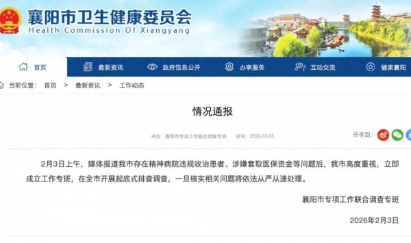 2月3日上午,襄阳市卫生健康委员会网站发布情况通报: