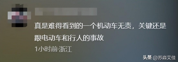 "真是难得看到的一个机动车无责,关键还是跟电动车和行人的事故"