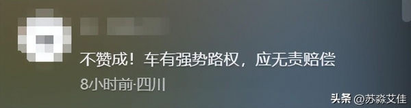 "不赞成!车有强势路权,应无责赔偿"