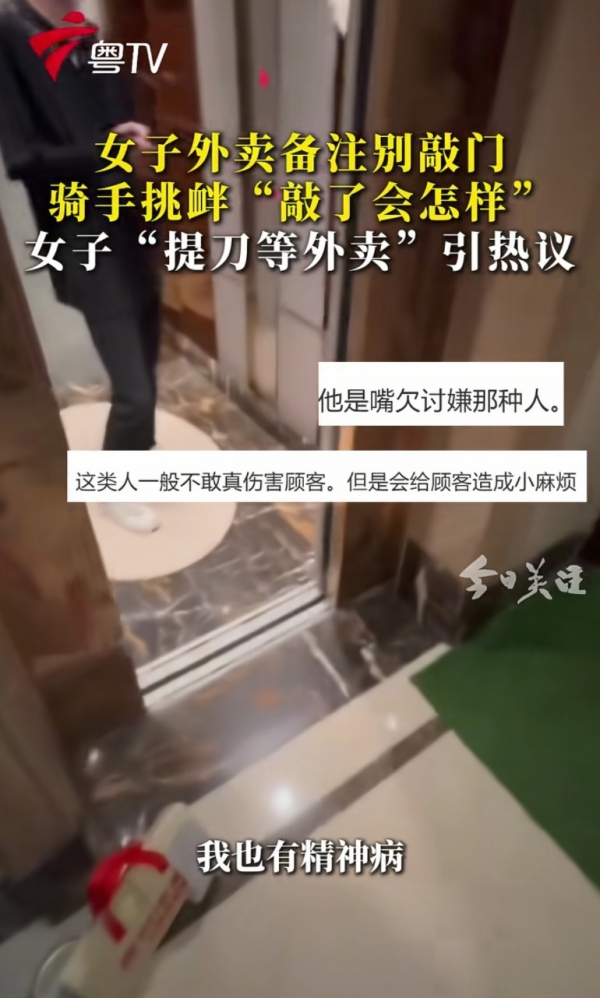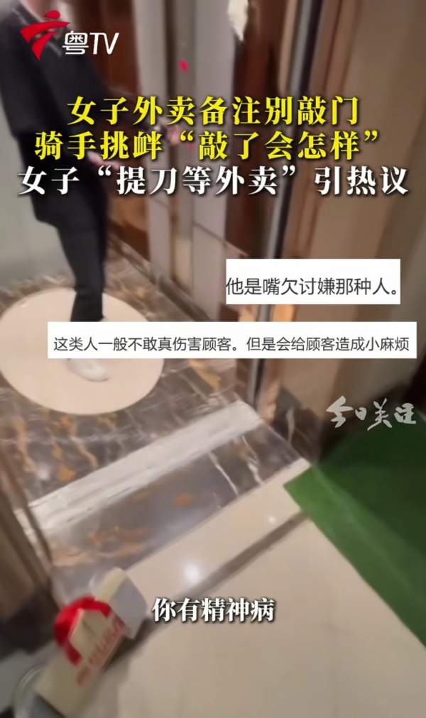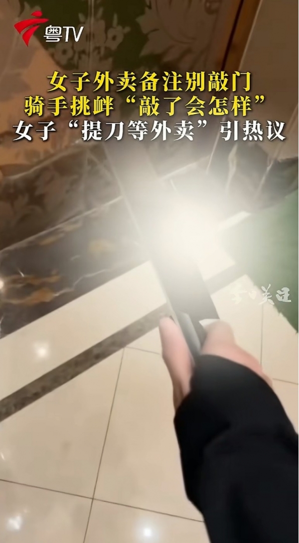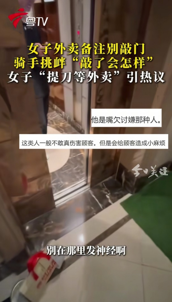 一位女孩的选择是提起菜刀去电梯口等他,近日这则"女孩提刀等候外卖"的视频火爆全网!