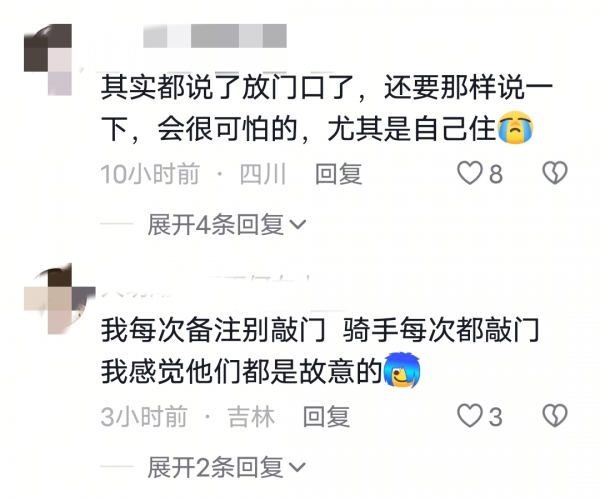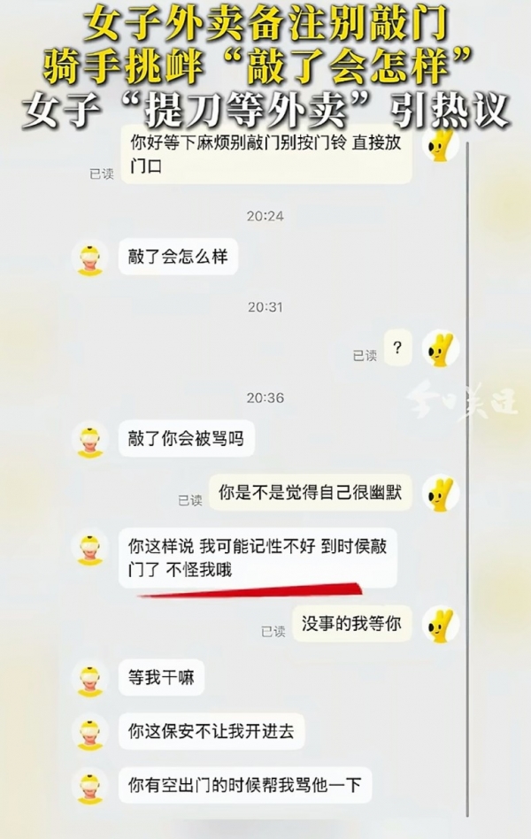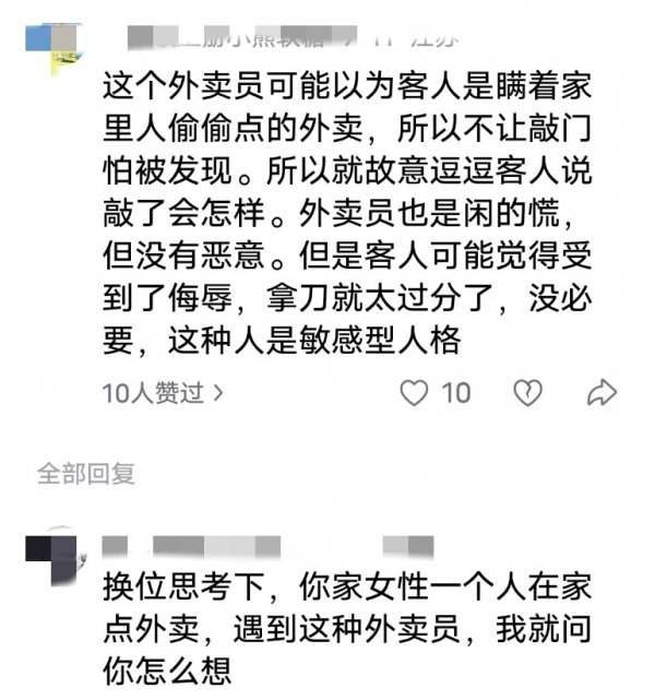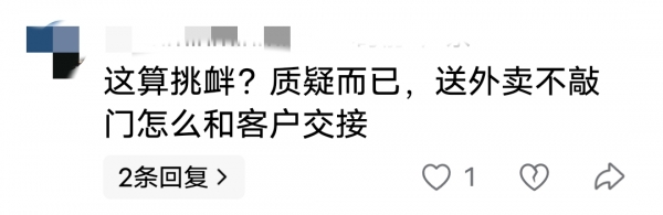 还有网友为骑手抱不平:这算挑衅?送外卖不敲门怎么和客户交接?