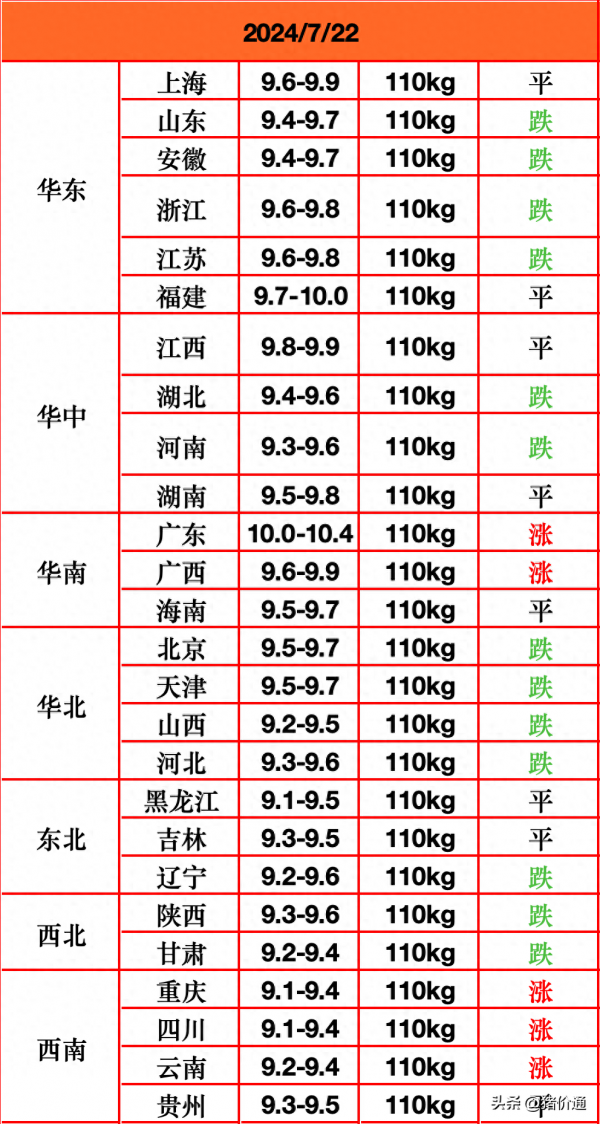 其中华东、华中、华南地区有部分地区下跌,而华北和东北地区转为部分下跌趋势,西北和西南地区处于涨跌互现局面。