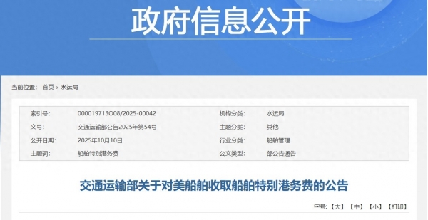 中方公告明确指出,美方此举严重违背了国际贸易准则和中美海运协定,对中美海运贸易造成严重破坏。
