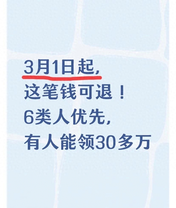 3月1日起的个税退税,是国家给纳税人的"多退少补"结算,不是福利,但对符合条件的人来说,是实实在在的"回血"。6类优先退税人群覆盖了低收入者、家庭负担重的人、灵活就业者、换房改善人群,最高可退30多万元,只要对照自查、如实申报,就能顺利拿到这笔钱。