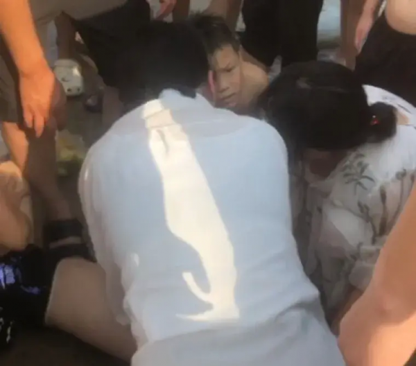 潘文彪立即沉入水底搜救第二个孩子,2分多钟后,又成功救起一名十多岁的小男孩。此时,小男孩的脸色已经发紫、全身苍白,没有了呼吸。
