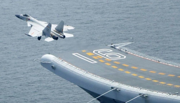 利用滑跃式甲板实现起飞,是相对最为简单的一种。滑跃甲板的外观特征就是舰艏向上翘起一个弧形,上翘的角度一般在 12 至 14 度左右,我国的 " 辽宁 " 号和 " 山东 " 号两艘航母都是采用这种技术。