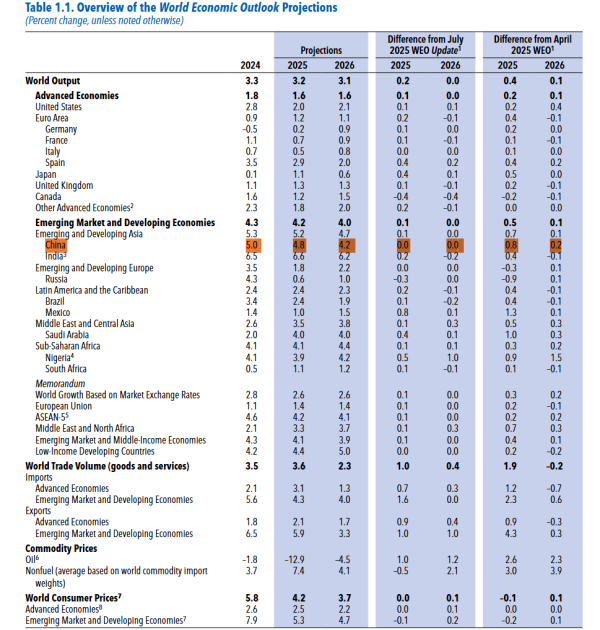 与7月预测值相比,新一期报告对中国今年经济增速4.8%的预测维持不变。