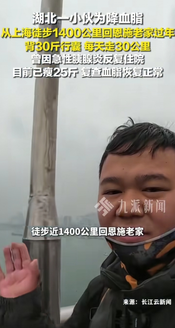 太猛了!湖北95后小伙徒步1400公里从上海回恩施过年,"本届春运卷王"已诞生。