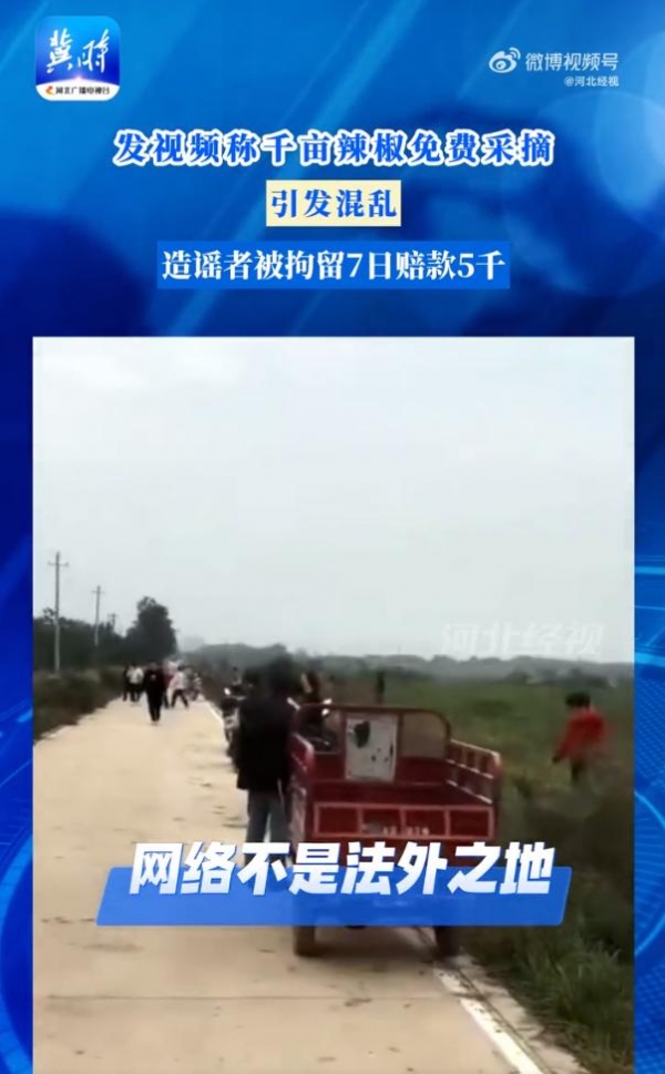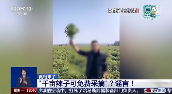从线上刷屏,到线下踩踏,谣言的破坏力可不只是流量那么简单,农民辛辛苦苦种的辣椒,本来是要采收卖钱的,现在被不明真相的人一顿乱摘,损失谁来赔?而且那么多人涌进农田,现场秩序怎么管?安全隐患谁负责?