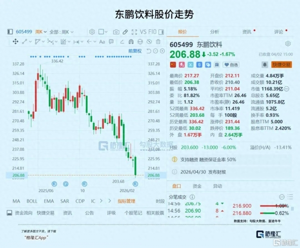 而自2025年6月高点后,东鹏饮料A股股价已然一路阴跌,至今跌幅已近40%,跌去超500亿市值。