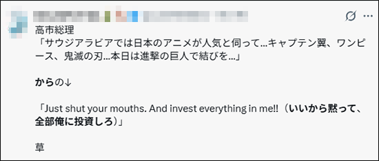 此外,很多日本御宅族在看到报道后觉得高市莫名其妙,"不知道高市说这话是想做什么?主人公放这话的时候可是被狠揍了一顿。"