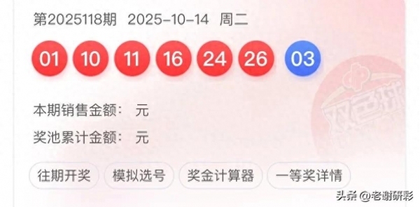 10月15日晚,中国福利彩票双色球游戏第2025118期开奖结果揭晓。