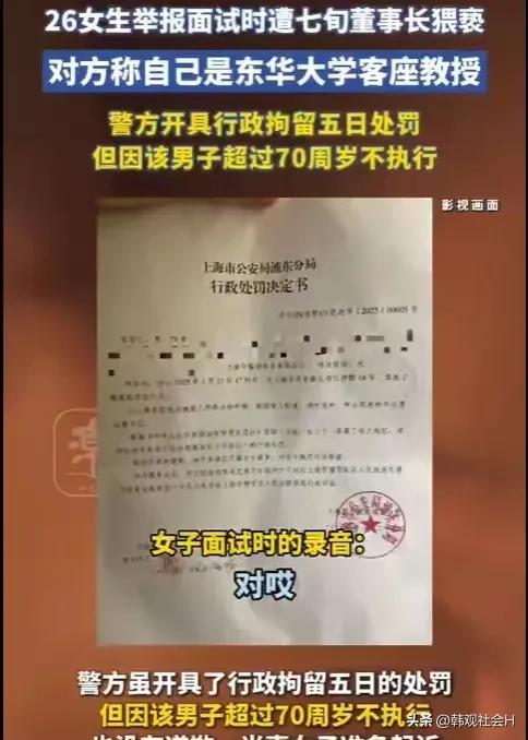 人证物证俱全,赖也赖不掉。上海浦东分局直接对该董事长处以行政拘留5日的处罚。张女士委屈的是,由于该董事长已经超过了70周岁,依照法律规定,对其拘留五日的行政处罚执行不了!而且,董事长连说一句道歉的话也没有做到。无奈之下,被猥亵的张女士下一步准备起诉维权。