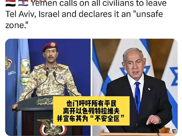 当天胡塞武装呼吁所有平民离开以色列特拉维夫,并宣布特拉维夫为"不安全区域"