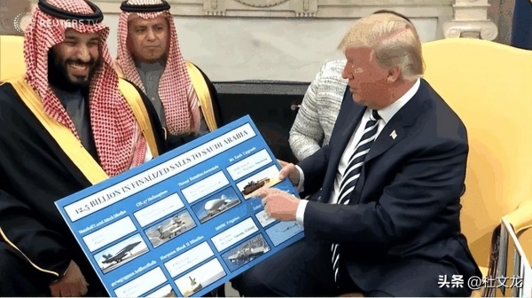 特朗普总统在沙特主要领导人到访美国之后,搞了一个大黑板,每个上面都有图都有价格,声称,如果不把这些玩意全买去,休想让美国提供保护。