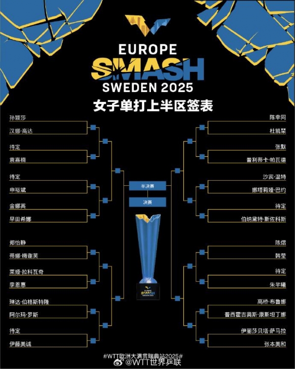 孙颖莎、陈幸同、陈熠分在上半区。