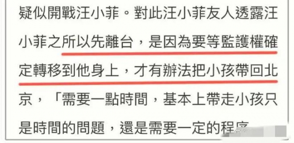 汪小菲方表示,监护权移交手续未办完,怎么带孩子走,手续办理还要徐家配合。