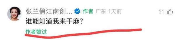 随后,张兰评论区留言说"谁能知道我来干嘛"?