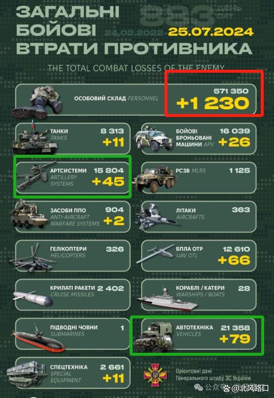 7月25日,乌克兰公布俄军损失数据,1230名士兵、37辆坦克/装甲车、45门火炮、79辆加油车、10辆特种装备被摧毁,这代价可不低。
