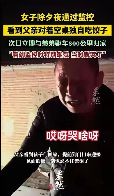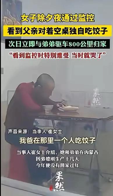 可远在老家的监控画面里,只有父亲一个人,对着一张空荡荡的桌子,默默吃着一碗饺子。