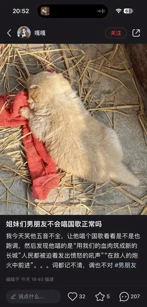 之前就有个小姐姐,发现男朋友居然不会唱国歌。要知道,国歌真的几乎算是刻在DNA里的程度。于是,女孩毫不犹豫的举报了男朋友。帽子叔叔回复了女生,仅仅是不会唱国歌不足以证明,但是会持续观察男生的动向。