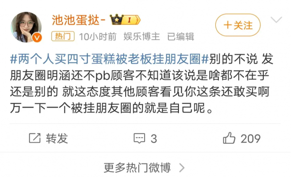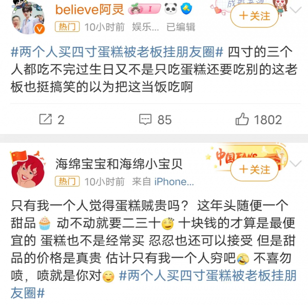 然而,有网友爆出这样一条消息,她看见一个蛋糕店老板发朋友圈,讽刺顾客吃不起蛋糕!