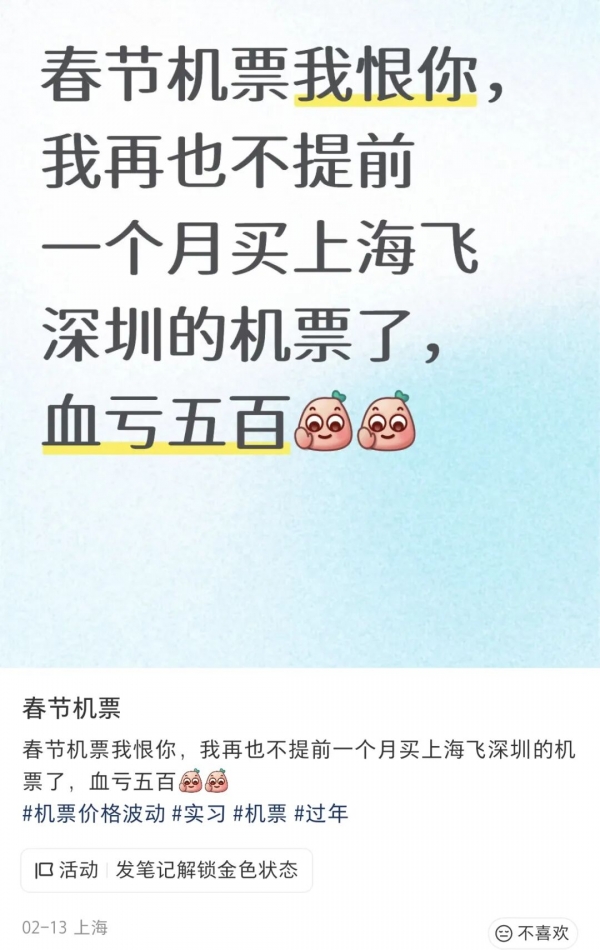 此外,"套娃机票"(指在原本的行程中层层嵌套,利用中转航班多玩一个城市)也成为今年春节出行的"隐藏款"玩法。