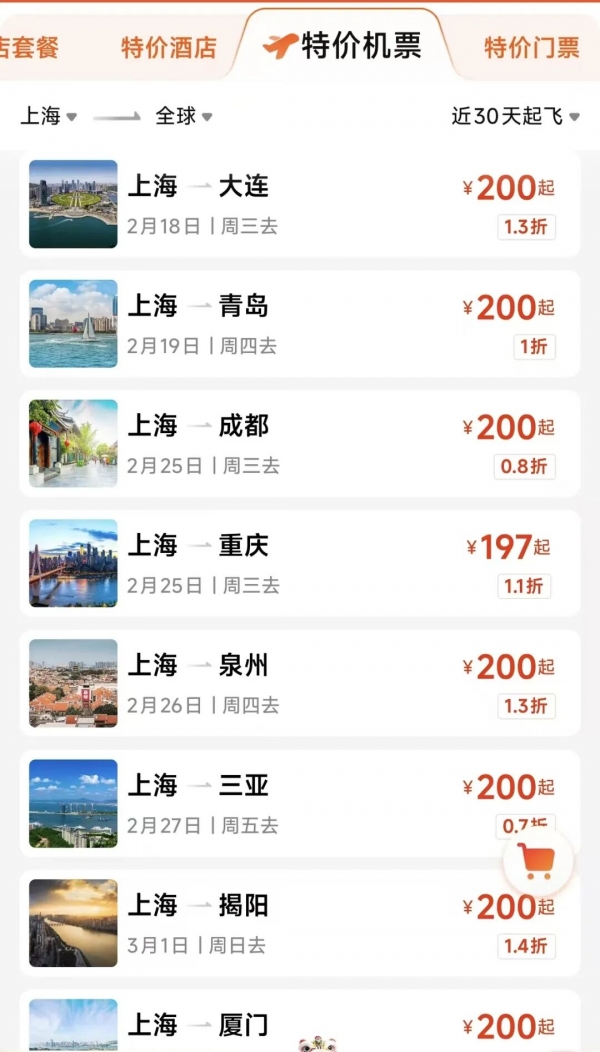据报道,记者在出行平台还查询到,最近几天多条航线仍有低价机票在售。如2月19日北京至西安404元、北京至乌鲁木齐430元等。