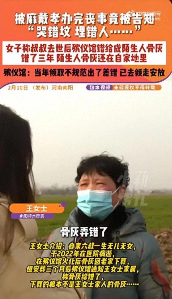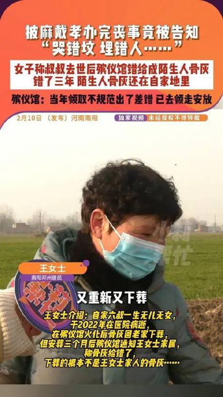 亲人离世本就是心头大痛,若是入土为安后再遭变故,简直就是伤口撒盐。南阳邓州的王女士一家就摊上了这档子糟心事,给六叔操办丧事,风风光光下葬,谁知三个月后殡仪馆一句话,全家人如五雷轰顶:人埋错了,骨灰袋张冠李戴。