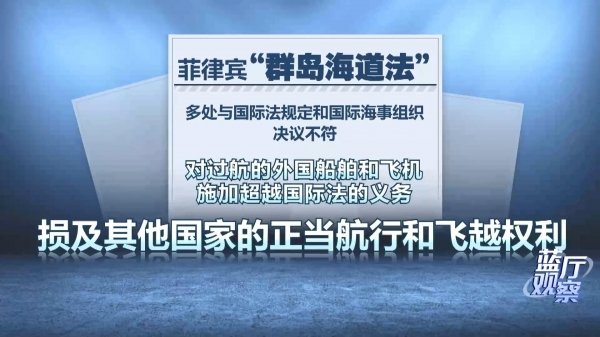 中国南海研究院海洋法律与政策研究所副所长丁铎接受《蓝厅观察》记者采访时表示,菲律宾长期以来不放弃对于中国南沙群岛部分领土主权的觊觎之心。"海洋区域法"里面,把南海仲裁案非法裁决作为菲律宾海洋权利主张的一种依据或者是来源之一。