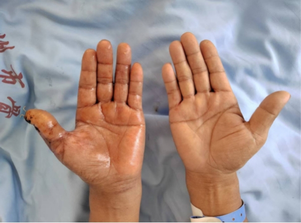 机床意外后,王先生的左手拇指掌指关节以远部分被绞碎,屈肌腱抽出20余厘米,在当地医院清创缝合后,拇指残端虽得以愈合,却彻底丧失了核心功能。对于靠手艺吃饭的他而言,没有拇指,就像失去了"半只手",别说操作机床,就连日常的衣食起居都变得困难。
