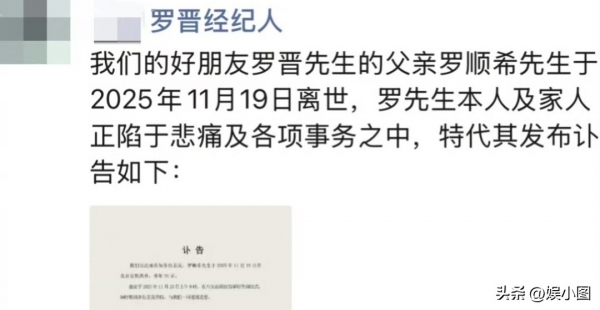 经纪人还特意提了句,家属正陷在巨大悲痛里,罗晋也在全力处理治丧事宜。
