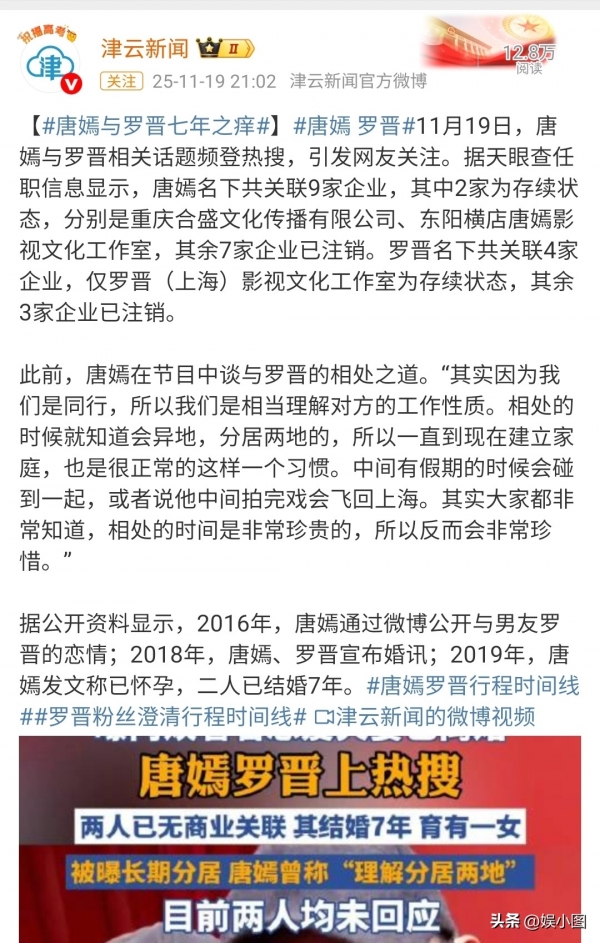 之前不知道是谁先起的头,网上突然全是罗晋唐嫣婚变的消息。