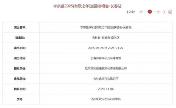 就在刚刚过去的这个周末,李宗盛2025【有歌之年】巡回演唱会-长春站官宣将于2025年4月25日至4月27日,在长春五环体育馆举行。