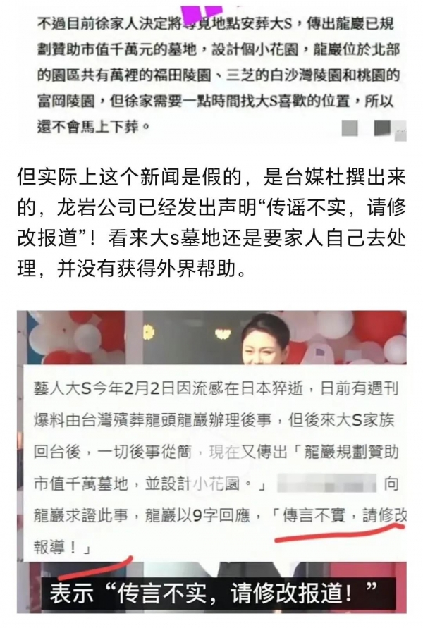 此前,台媒传出殡葬巨头龙岩公司将赠送价值千万的风水宝地给大 S,这一消息瞬间引发热议。