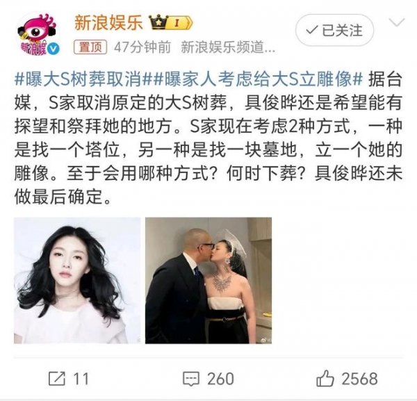 而具俊晔那边,似乎也在坚持为大 S 寻找独立的安息之地。