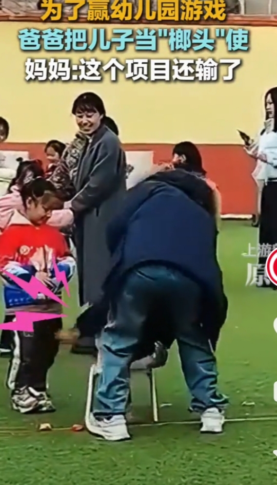刷到个超搞笑的视频,幼儿园亲子赛上,爸爸为了赢把儿子当榔头使,攥着娃去坐破气球,父子俩笑到眯眼。网友调侃这届爸爸为赢比赛,把娃拎成"小飞侠"都不手软。