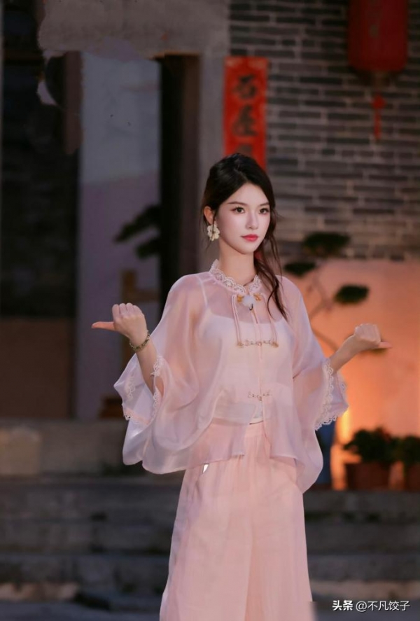 除了徐璐,其她女嘉宾的新中式穿搭更让人眼前一亮。何泓姗的明黄色新中式上衣,胸口绣了白色小花,像古代绣娘刚绣好的帕子。明黄色本来容易显黑,但她选了哑光面料,饱和度调低了,黄皮穿也不挑。配条白色阔腿裤,上班见客户都能穿,比西装裙多了份温柔。