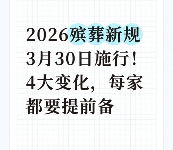 办场丧事花好几万,还被忽悠着买高价骨灰盒""想选生态葬却没渠道,公墓墓位越买越贵"这些殡葬领域的糟心事,以后终于有了解决方案!2026年1月7日,国务院正式公布修订后的《殡葬管理条例》(以下简称《条例》),明确自2026年3月30日起施行。这是1997年原条例施行以来的首次全面修订,直击殡葬行业"天价收费、监管缺位、生态不足"三大痛点,带来4大核心变化,关系到每个家庭的切身利益,一定要提前读懂记牢!