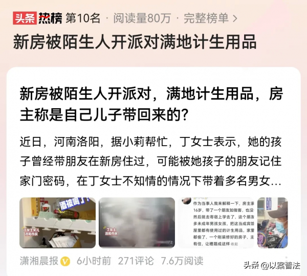 但这里需要注意的是,纵使几人真的是合法进入,但进入以后肆意的毁坏家里的财物,也构成典型的民事侵权。