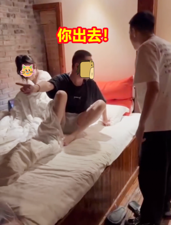 为了防止两人逃跑,丈夫在来酒店前特地找了几名帮手,他们一个负责堵门,一个负责拍照留证据。