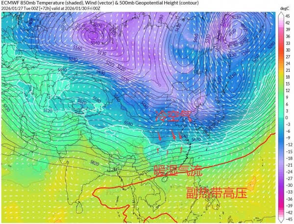 只不过呢?接下来很快就有冷空气,雨雪的发展,这也是1月最后一波大范围雨雪过程,还是有点强。