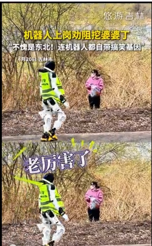 机器人上岗劝阻挖婆婆丁!"不愧是东北!连机器人都自带搞笑基因"最近吉林一公园整出大活--机器人上岗专管挖婆婆丁,一开口全是大碴子味,直接笑翻全网!不愧是东北,连AI都自带小品天赋,这波操作太接地气。