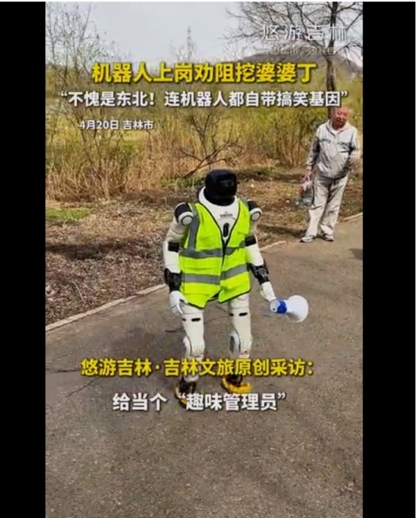 网友笑评:东北机器人都能出道演小品了!还有人调侃:再不管,公园都被挖成平地了。更有人点赞:柔性管理太聪明,高科技遇上民俗,逗笑大家拉满还解决问题。
